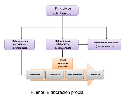 Retomando el tema sobre la formación de la voluntad, es válido destacar que la sujeción de las partes a la mediación se corresponde con el proceso corporal de la voluntad, y este se distingue por tres períodos fundamentales: determinación participante, determinación colaborativa, y determinación resolutiva.